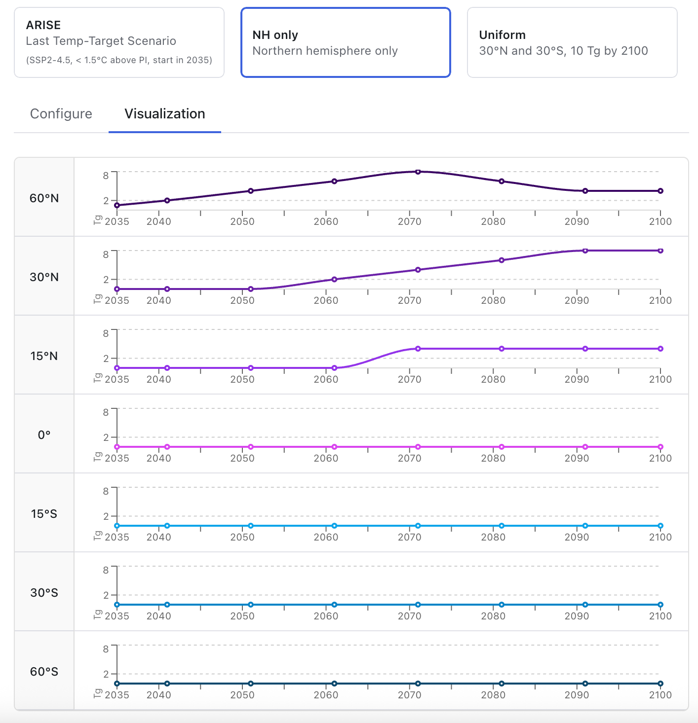 These researchers have designed custom scenarios, often focused on their region of interest, then provided voice-over narration to help users understand the scenario and interpret the results. By amplifying perspectives from Global South, we also aim to facilitate a broader and more inclusive discussion about SAI.
