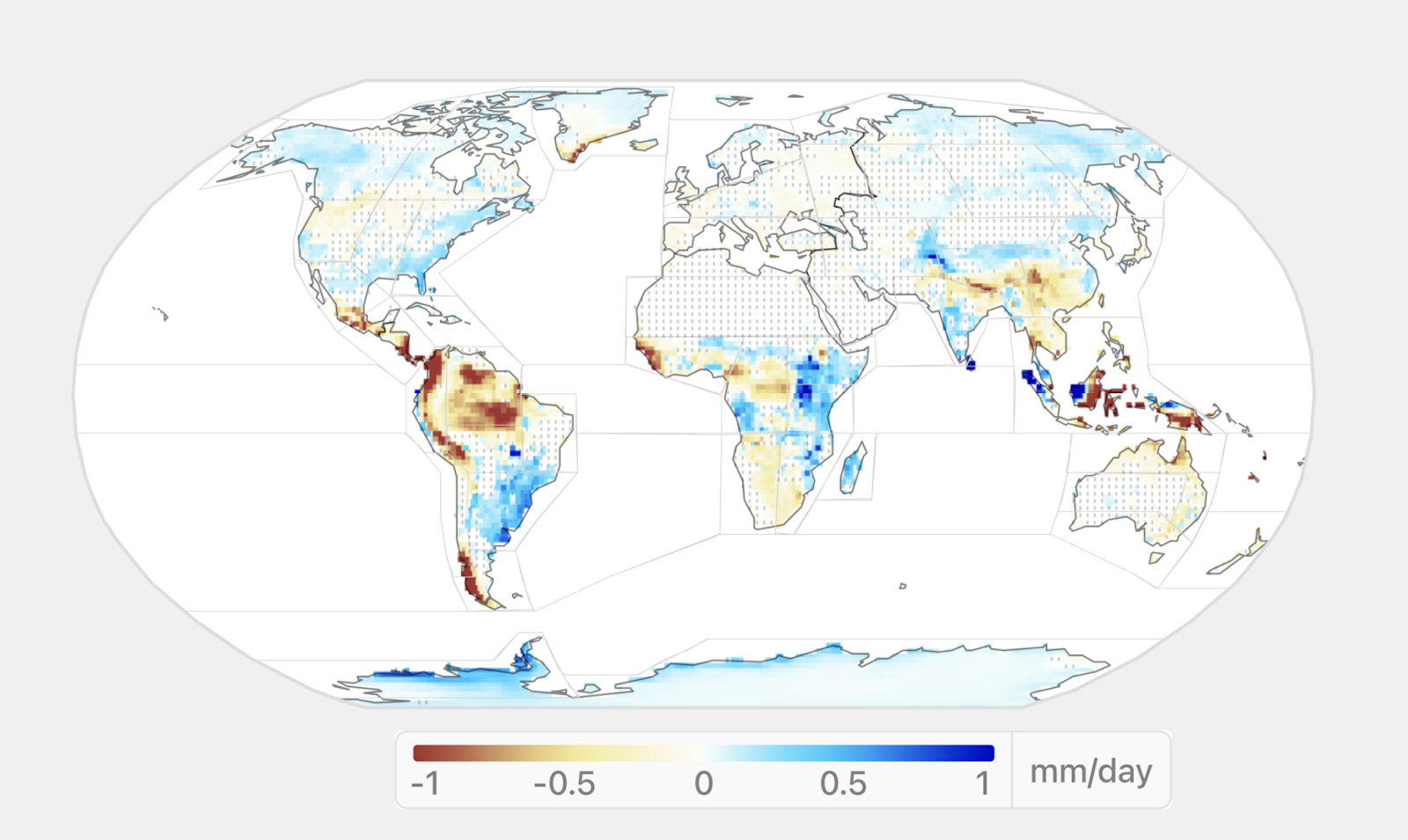 Significance hatching is a new visual feature that helps users understand, for any given Simulator output, whether or not the result is statistically significant compared to the usual and expected variability of the climate. Regions are visually “hatched” where, according to a t-test, the change in the given scenario is insignificant compared to climate internal variability. This is estimated using the 20 year preindustrial distribution of the variable.